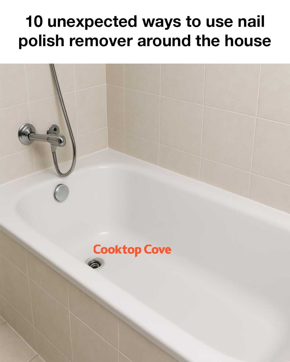 Bathtub scum, a combination of soap residue and body oils, can be stubborn to remove. Nail polish remover can cut through this grime effectively. Simply apply a small amount to a cloth and scrub the affected areas. Rinse thoroughly with water afterward to remove any acetone residue, leaving your bathtub sparkling clean.