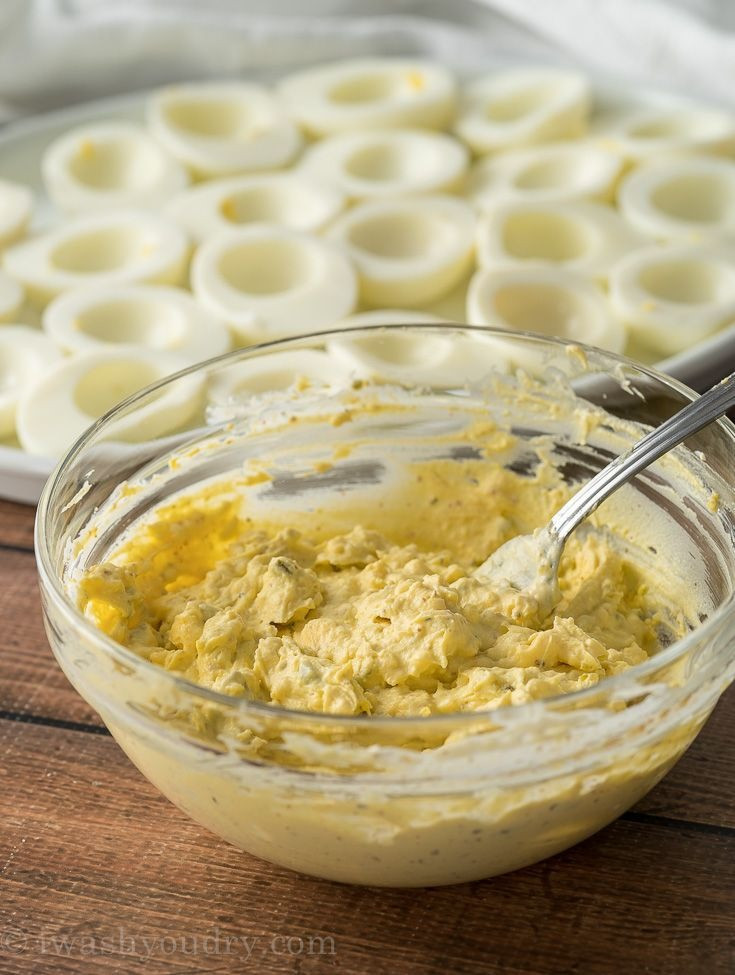 If you want to make Deviled Eggs ahead of time, the key is to keep the egg whites and filling separate until you’re just a few hours away from serving.