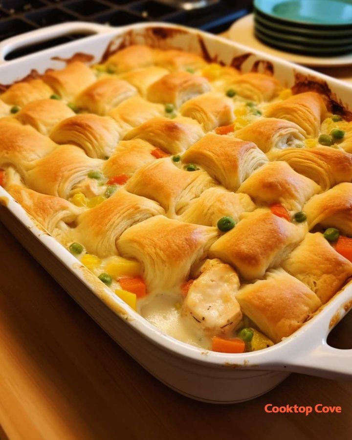Enjoy the comforting and flavorful Chicken Pot Pie Bubble-Up Bake, and delight in the joy it brings to your table. This tasty dish is sure to become a family favorite, offering a delightful twist to the classic chicken pot pie.