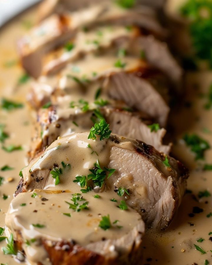 Traditionally, French-inspired pork dishes lean towards being accompanied by root vegetables or a potato gratin. However, to put a twist on the norms, I often serve this delicate pork tenderloin alongside a bed of garlic-infused mashed cauliflower or roasted asparagus, which not only complements the creaminess of the sauce but also adds a touch of elegance to the plating. Undoubtedly, a side of crusty bread or a rice pilaf works wonders to absorb every last drop of the divine sauce.