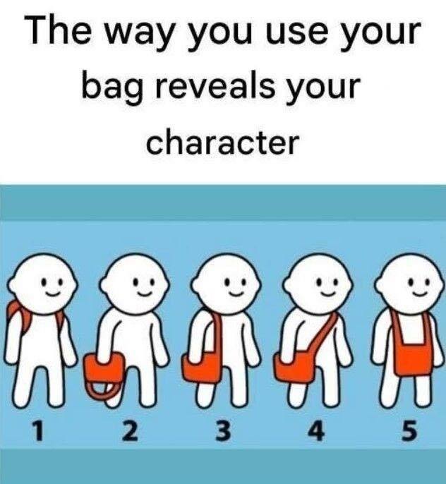 Your tendency to hold your bag in your hand symbolizes a desire for mastery and independence. You’re the type who likes to stay informed, and you probably have a well-formed opinion on just about everything. This curiosity fuels your intellectual growth and ensures you’re always up-to-date on the latest trends and events. While you may come across as assertive, your straightforward and reliable demeanor makes you trustworthy and dependable.