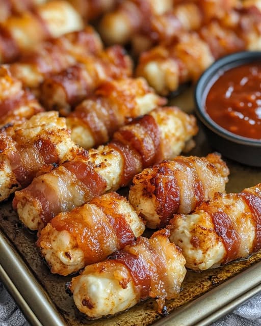 Low Carb Nashville Hot Bacon Wrapped Mozzarella Sticks